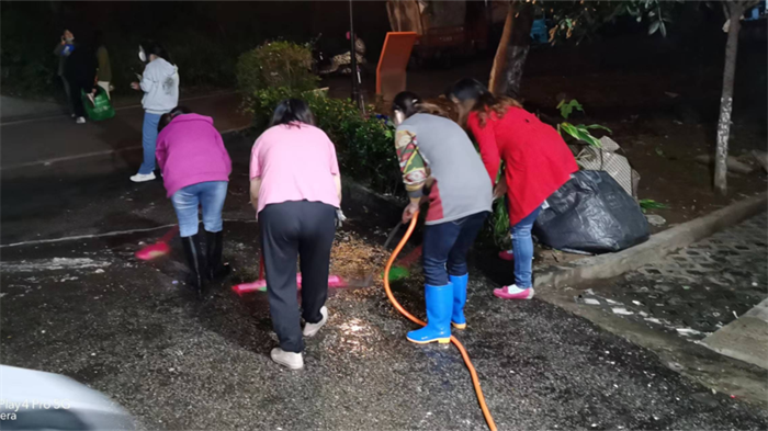 由于食堂已取消堂食,同学们需要将一日三餐打包带回寝室,吃完后丢弃的一次性餐具随之激增。为解决这一问题,宿舍阿姨们、环卫人员24小时在岗,着力加大对生活垃圾清理的频率,尽全力保障楼道内、园区内以及两个校园的干净整洁。