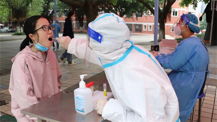 每日按时按点抵达校内核酸采样点,医护人员正在扛起物质奔赴每栋宿舍楼下的核酸采样点,为学生提供核酸采集服务。为让教职工更方便、更安全地进行核酸采集,医院增设核酸采样点位,让全校所有教职工在校内进行核酸检测。