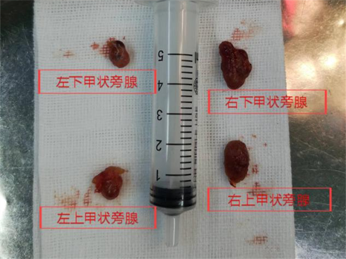 患者张某某,长期维持性血液透析病人,透龄已达10年以上,在治疗过程中逐渐出现甲状旁腺激素(PTH)逐渐升高,最高时达2000pg/ml左右,经药物治疗不理想,且病情逐渐加重,出现顽固性皮肤瘙痒、全身骨痛、血管钙化、高磷血症,严重影响患者生活质量,经该院MDT团队会诊后,决定为患者实施甲旁亢手术治疗。