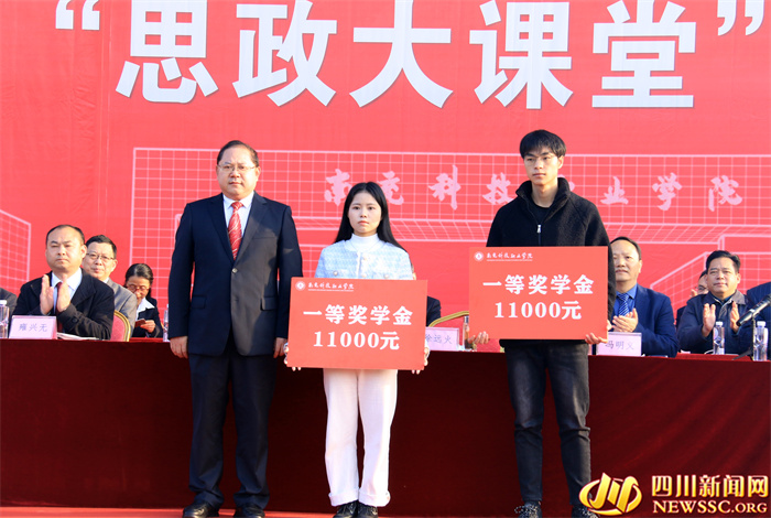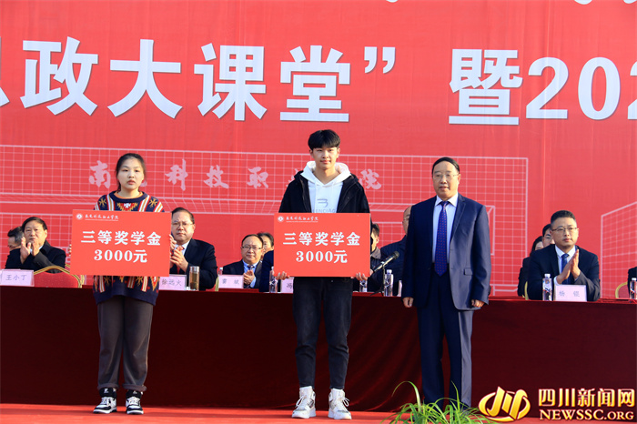 四川新闻网消息(记者 郭建坤 文/图)11月19日上午,南充科技职业学院思政大课堂暨2022级新生入学典礼在庄严的国歌声中拉开帷幕,学院党委书记、省政府督导专员徐远火以“青春向党、感恩奋进、成长自己”为主题给新生上了一堂极具教育意义的思政大课,学院顾问冯明义宣读《关于表彰2022级新生奖学金获得者的决定》,学院副院长王小丁,党委副书记罗凌,纪委书记兼组织部、宣传统战部部长雍兴无出席。典礼由罗凌主持。