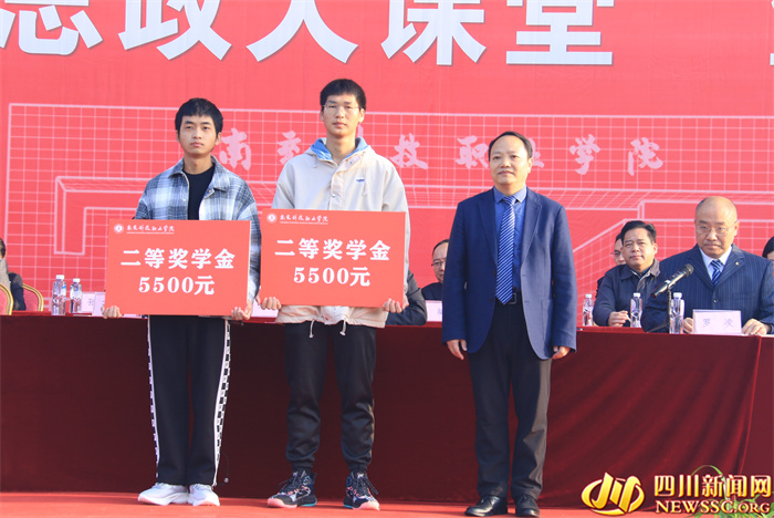 典礼上学校为部分学习成绩优异的新生颁发了“2022级新生奖学金”,消防救援学院张波、电子信息学院柏芹作为新老学生代表分别进行发言,教育学院院长助理黄娜作为教师代表进行发言。