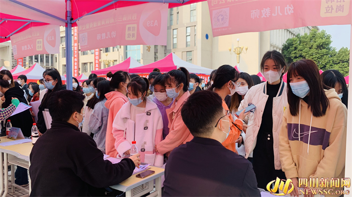 四川新闻网消息(李婷婷 记者 郭建坤 文/图)为拓宽就业渠道,帮助学生迈好走向社会的第一步。11月26日上午,“智汇天府”公共招聘进校园(南充站)暨南充职业技术学院2023届毕业生冬季双选会在南充职业技术学院成功举行。来自北京、上海、广东、江苏等8个省(市)150余家用人单位提供了3500余个就业岗位。涵盖了教育、金融、法务、设计、电商、新媒体、公共管理、文化旅游等多个行业领域。该学院各专业毕业生3352人参加本次线下双选活动。