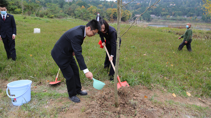 揭牌仪式结束后,参加活动的领导及相关人员在生态司法修复基地开展了植树活动。