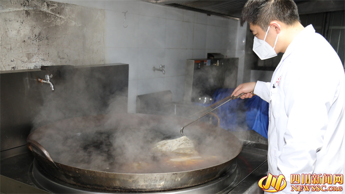 四川新闻网消息(刘俊榕 敖朝军 记者 郭建坤 文/图) 为全面贯彻落实国家第九版防控方案,进一步优化防控工作,南充市身心医院自12月11日起,每天为全院1300余名精神科住院病人熬制预防新冠肺炎中药“大锅汤”。同时为广大市民积极提供中医药服务,满足人民群众预防新冠病毒需要,开通新冠病毒预防中医药处方和调配快捷通道,并提供免费煎药服务,做到中药“应服尽服”“愿服尽服”,切实发挥中医药对新冠肺炎预防的独特作用。