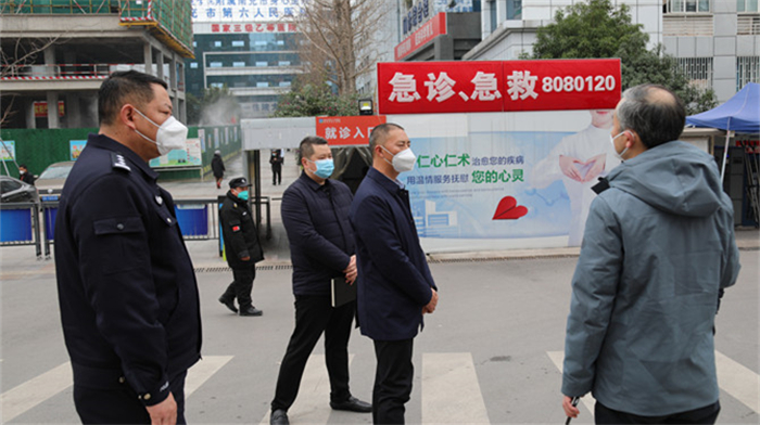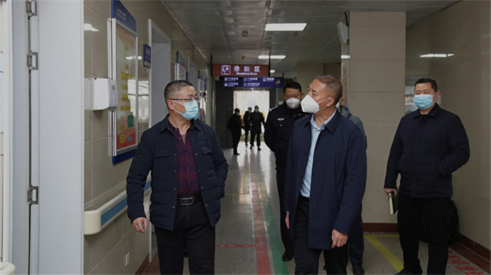 雍荣强一行查看了发热门诊、急诊科、重症医学科等科室的设施设备和床位配置现状,听取了院长安先勇关于医疗资源扩容、人力资源调配、服务流程优化、核心制度落实、重症病人救治等方面的情况汇报,详细了解了医院在新冠病人救治方面存在的困难和急需解决的问题。