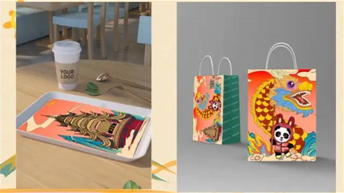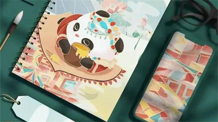 《路见色达》以四川省甘孜藏族自治州色达县为主题进行创作,以四川熊猫、色达红房子、藏族服饰、经幡为设计基础。凸显地域文化,对熊猫人物化,使得画面更富有活泼灵动的感觉。