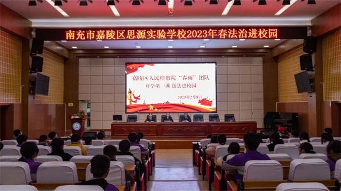 2月8日下午,嘉陵区人民检察院副检察长张利君带领未检“春雨团队”干警走进嘉陵区思源实验学校,以《拒绝校园欺凌》为主题,为同学们开启新学期的第一堂法治课。