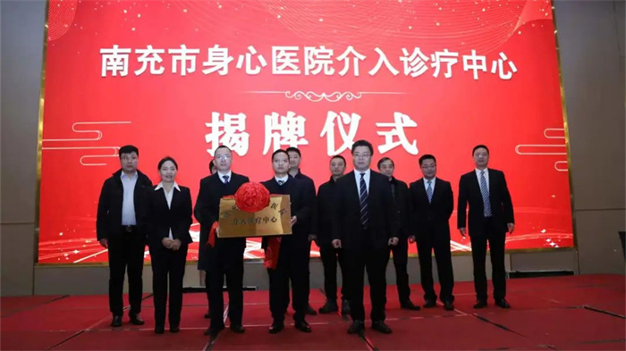 随后,医院领导与会议邀请的4位全国知名介入专家共同为南充市身心医院介入诊疗中心揭牌。