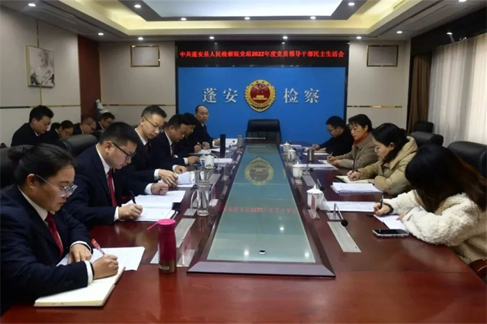 四川新闻网消息 2月20日,蓬安县人民检察院党组召开2022年度民主生活会。南充市人民检察院检察委员会专职委员朱瑛、县委政法委副书记肖静、县委组织部干部监督股股长邓朝维等到会指导,会议由院党组书记、检察长王能钊主持。