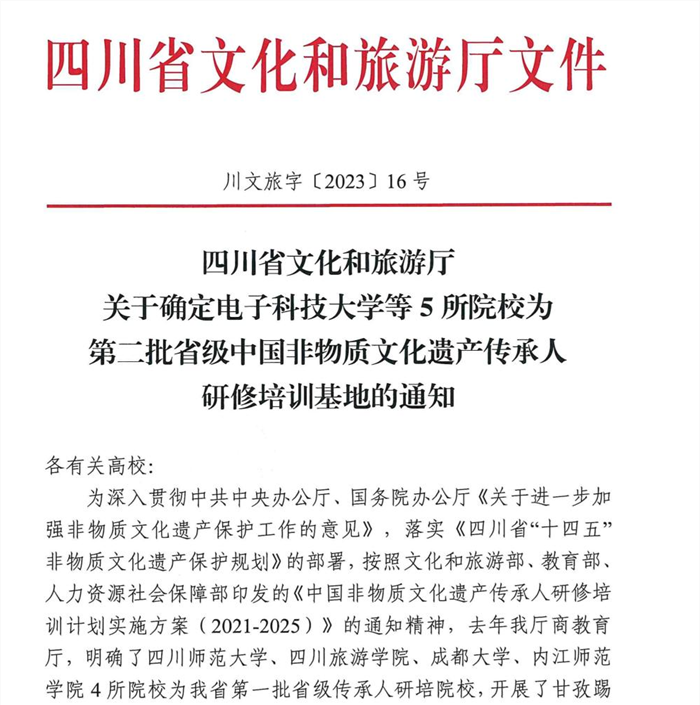 据悉,确定为第二批省级中国非物质文化遗产传承人研究培训基地的还有电子科技大学、成都理工大学、四川音乐学院、绵阳师范学院共5所高校。