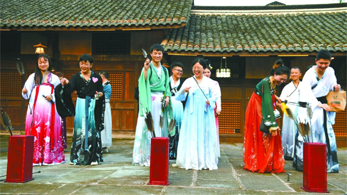 当天,小朋友们从不同线路、不同角度欣赏和感受相如故城的魅力。武庙和南门的投壶、射箭、游园游戏,让幼儿在玩乐中了解古代孩童的生活;文庙和书院的拜师、礼仪、朱砂开智等活动,让幼儿在传统仪式中感受古圣先贤的祲威盛容……