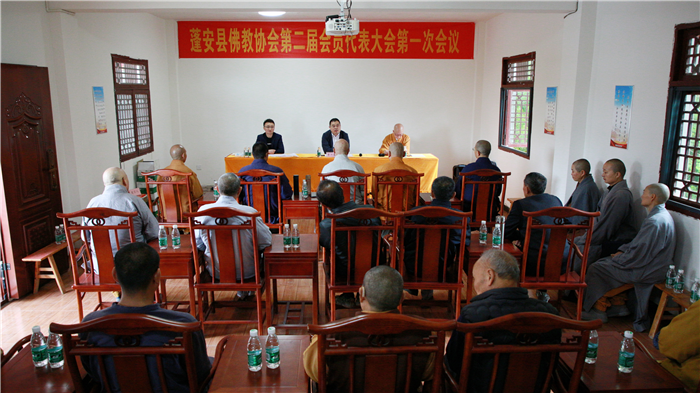 四川新闻网消息 近日,南充市蓬安县佛教协会第二届会员代表大会第一次会议在蓬安县龙角寺圆满举行。该县佛教协会会员代表等40余人参加会议,县民宗局副局长贾川蓬主持会议并讲话。