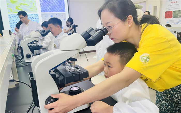 四川新闻网消息 “哇,这个细胞是圆形的,好漂亮啊!”5月25日,在川北医学院形态学实验教学中心,传来小朋友稚嫩的惊叹声。当日,川北医学院基础医学与法医学院党委细胞生物学与遗传学党支部开展了别开生面的“实验室开放日”主题党日活动,30余名青苹果幼稚园师生参与此次活动。