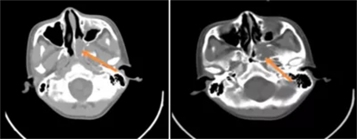 入院后,医生为患者进行了鼻腔填塞,但仍间断有活动性出血,查血结果显示他已轻度贫血。后经鼻内窥镜检查,主管医生杜经纬考虑其患有鼻咽纤维血管瘤。