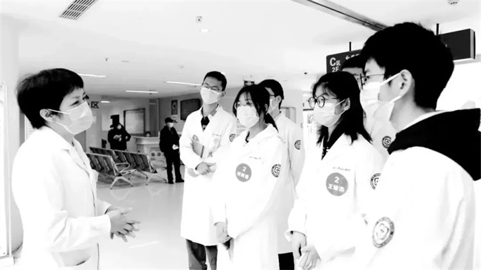 | 刁攀娅医生(左一)带领重庆大学医学院学生们了解门诊流程 |