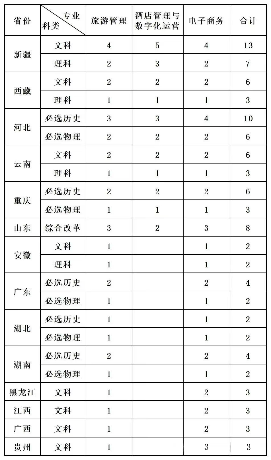 四川省以外各省(市、自治区)招生计划