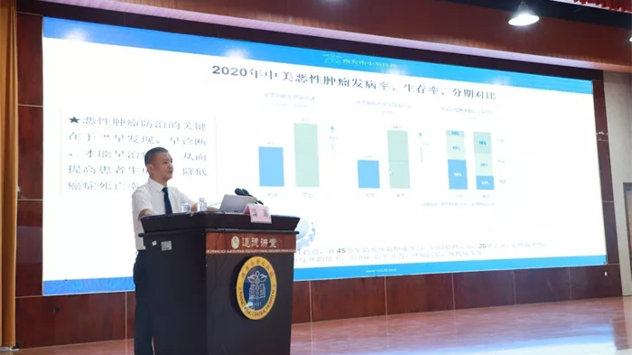 随后,蒲涛带来题目为《PET/CT肿瘤成像临床应用实践与体会》的学术报告,围绕全球肿瘤发病现状、规范肿瘤诊疗管理工作进展、核医学科发展过程等方面的内容进行了介绍,同时结合科室PET/CT分子影像中心试运行半年多以来的实际情况,为大家分享了PET/CT在肿瘤诊疗中的临床应用及实际案例。