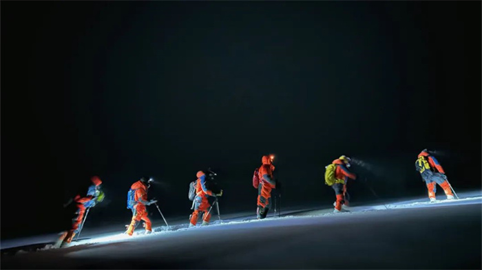 7月29日,仅入眠2个小时的雷波在向导的叫醒声中艰难地套上连体羽绒服,穿上拉链顶翻指甲盖的高山靴、踏雪板,匆忙啃了几口小面包后,戴上头灯、背上冲顶包、拾起登山杖进发。在缺氧以及缺觉的条件下,雷波凭借顽强的意志信念,从星辰走到了日出。最后于8点45分,成功无氧抵达了顶峰。