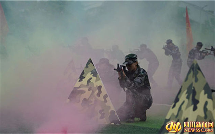 忽然间浓烟四起,两支队伍正借着掩护悄然前行,不知不觉间已到达全场中心。紧接着参演教官分别展示了格斗术,擒拿搏击尽显军人力量,引起观众阵阵高呼。