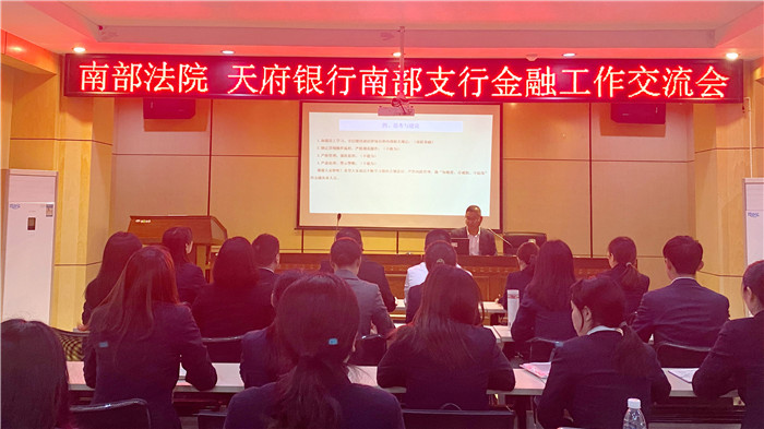 四川新闻网消息 近日,南部县人民法院党组成员、执行局局长姜德道一行受邀到四川天府银行南部支行就“金融司法大协同”、金融纠纷执源治理等进行交流座谈,了解金融机构的法律需求,征求对法院工作的意见和建议。这是南部法院推进“法银联动”,妥善化解防范金融风险的常态工作,也是今年以来“助推法治化营商环境建设”专项工作的实质化举措。