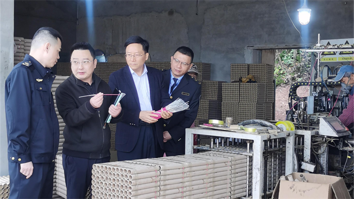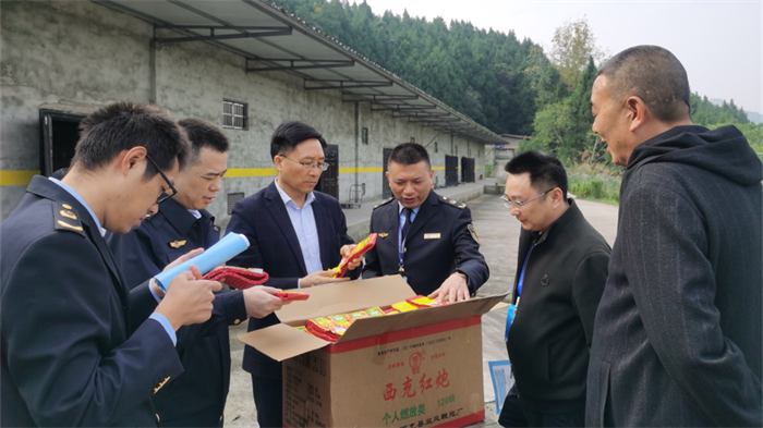 在西充汇鑫花炮厂生产车间,督导组对企业使用颜色不符合国家标准引火线的行为责令立即整改。在双凤鞭炮厂成品仓库,随机抽查了西充“礼炮 C2型”“红炮 120型”等爆竹产品,未发现“假大空”现象,产品标识符合法定要求。