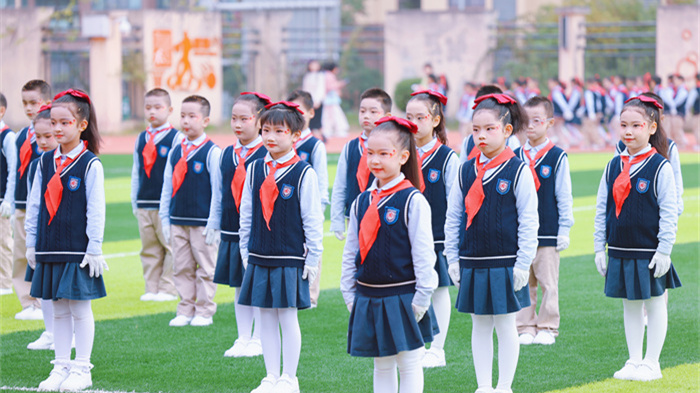 “第三套全国小学生广播体操——《七彩阳光》现在开始……”比赛现场,小学部二六班的全体学生个个精神抖擞,他们穿着整齐的校服,佩戴着鲜艳的红领巾,身姿端正,耐心地等待着音乐指令。