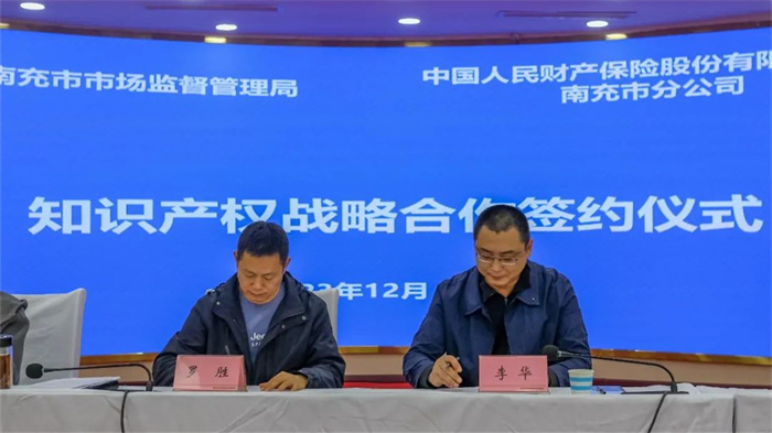 会上举行了南充市市场监督管理局与中国人民财产保险股份有限公司南充市分公司签约仪式,罗胜与该公司总经理李华分别代表两家单位就开展知识产权保险签署战略合作协议。
