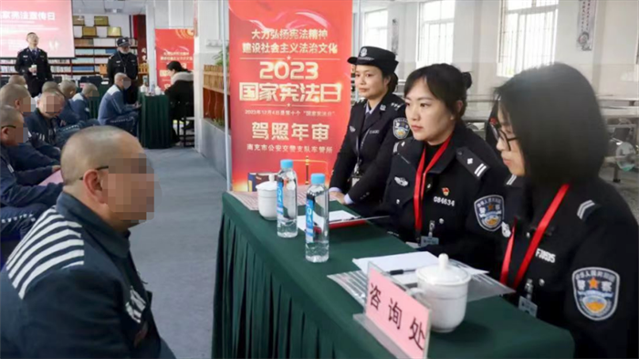 12月4日,为使服刑人员更好地了解政策,了解交通法律,南充市公安交警支队车管所专门派人到嘉陵监狱为服刑人员开展以“车驾管政策保安全”为主题的业务咨询活动,工作人员现场对100多名服刑人员进行一对一政策解答。