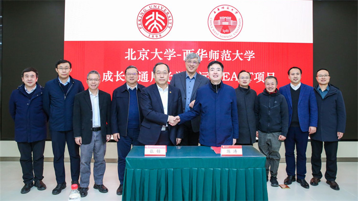 在热烈的掌声中,陈涛、张锦签订《北京大学-西华师范大学EAST项目合作协议》。