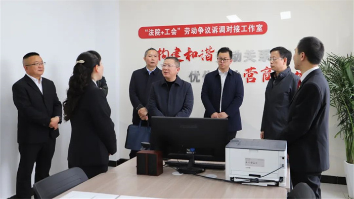 随后,吴涛一行参观了法庭的企业家会客厅、劳动争议诉调对接工作室,观看了共享法庭和劳动争议解纷平台的操作演示,充分感受这些平台在提高司法效率、便利当事人诉讼等方面发挥的积极作用。