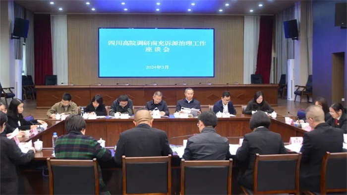 在四川法院调研南充诉源治理工作座谈会上,吴涛听取了南充诉源治理相关工作情况。
