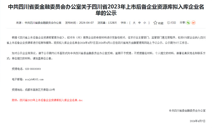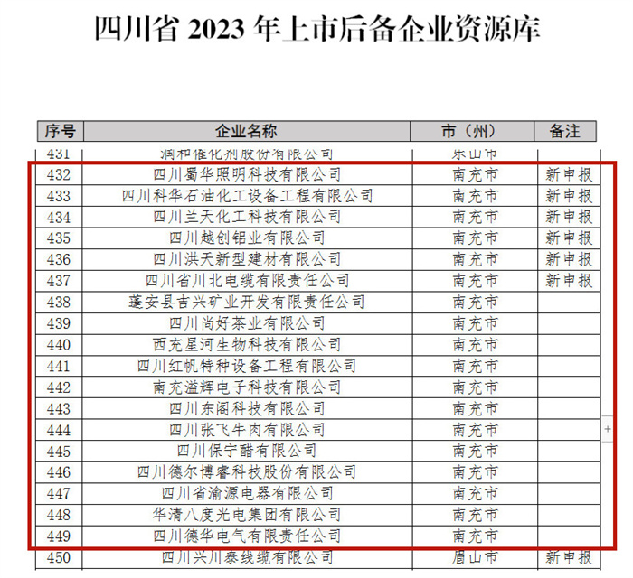 四川新闻网消息(赵莉 记者 李婷婷) 近日,中共四川省委金融委员会办公室公示了四川省2023年上市后备企业资源库拟入库企业名单,拟将578家企业纳入四川省上市后备企业资源库进行培育和辅导,其中,南充有18家企业入选。