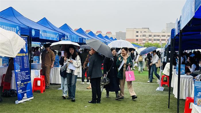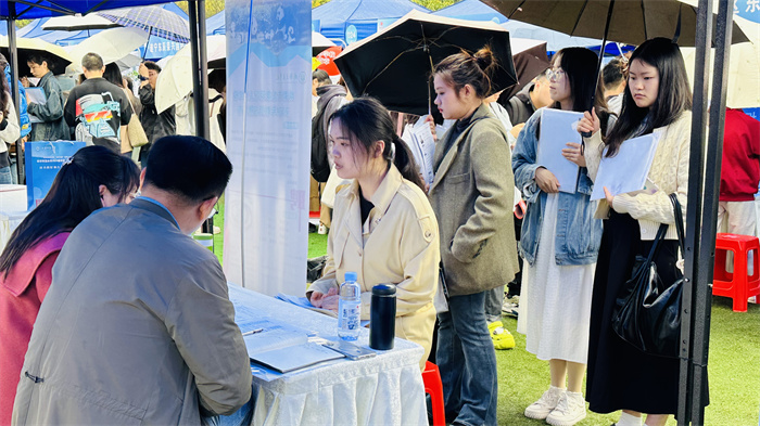 尽管细雨绵绵,却丝毫未能阻挡毕业生们追求梦想的步伐。双选会现场人头攒动,气氛热烈。开场不到半小时,会场内已是人声鼎沸,许多展位前更是排起了长长的队伍,毕业生们怀揣着对未来的憧憬,积极与用人单位交流,寻找心仪的岗位。