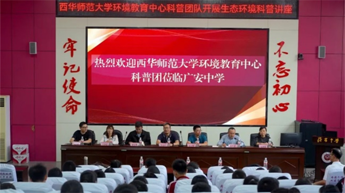 四川新闻网消息 4月29日,西华师范大学环境教育中心(国家生态环境科普基地、川东北环境教育与科普基地、四川省生态文明普及基地)主任李友平教授带领生态文明科普团队走进四川省广安中学和四川省邻水中学开展水生植物与污水净化、大熊猫与生态环境保护科普活动。广安市生态环境局、广安市教育体育局领导,两所中学相关负责人,教师代表及初高中学生共800余人参加本次活动。
