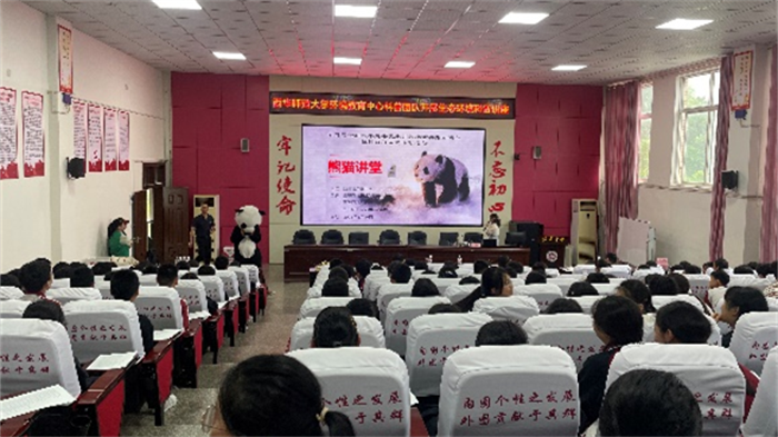 四川省科学技术厅软科学研究项目负责人权秋梅教授主讲的“水质净化,神奇的沉水植物”,主要讲述了沉水植物形态结构对水环境的适应性及其水质净化过程,号召同学们节约用水、珍惜水资源。四川省社科普及基地专项活动项目负责人王碧霞副教授主讲的“熊猫讲堂”,从大熊猫与猫、大熊猫与小熊猫、大熊猫与熊三个方面,结合其生物分类、分布区域、外观特征、饮食习惯等开展保护大熊猫的科普知识,号召同学们保护生物多样性、共建美丽中国。