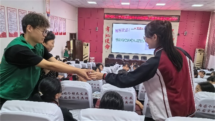 讲座过程中,两位老师将深奥的科学术语通过案例,运用幽默的语言,结合实验操作的微视频、声音、动画等多种教学方式,赢得了同学们阵阵掌声,课堂氛围热烈。在有奖问答环节,同学们踊跃举手,争相回答问题,展现了初高中学生对生态环境保护知识的浓厚兴趣。