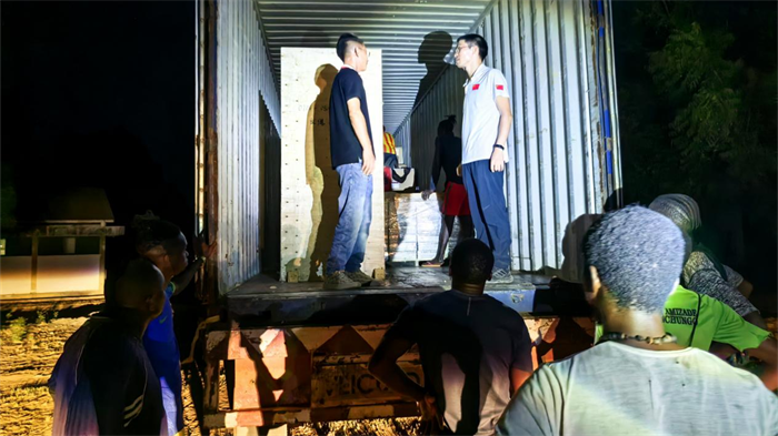 | 队长张映波带队连夜卸载设施设备 |