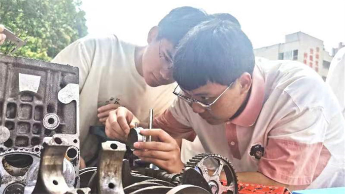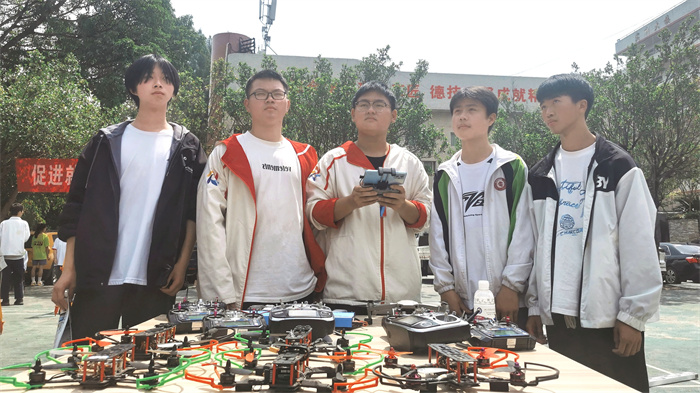 在技能展示区内,一名同学熟练地操控无人机完成起飞、飞行、升降,旁边还展示了各种型号的无人机;另一边,智能寻迹小车在地图上按照轨迹行动自如,全程不需要任何引导,凭借车身安装的寻向传感器就能实现自主直行、转弯等动作……校园内,各色成果展示现场热闹非凡,不仅有绘画、手工等精彩展品,还有汽车发动机拆装、建筑测量与建筑制图、酒店和旅游服务礼仪等职业展示活动,充分展现了职中学子的技能风采。