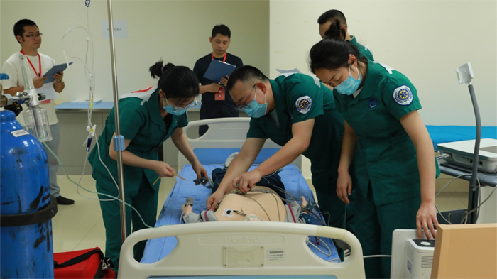 此外,此次大赛还特别注重团队协作和人文关怀,在模拟场景中,参赛人员不仅需要迅速建立有效的沟通机制,明确各自职责,协同作战,更要体贴和关怀患者,在确保患者得到及时、有效救治的同时缓解紧张焦虑的情绪,为患者带来了更多的安全感。所有参赛人员们均展现出了扎实的理论知识、精湛的操作技巧和临危不惧的应变能力,严格按照急救规范,迅速判断病情,果断采取措施施救,为患者赢得了宝贵的抢救时间。
