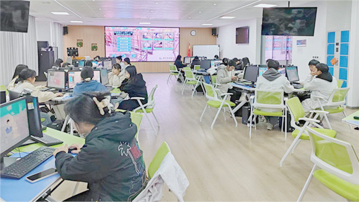 | 学生在智慧养殖虚拟仿真实训中心训练 |