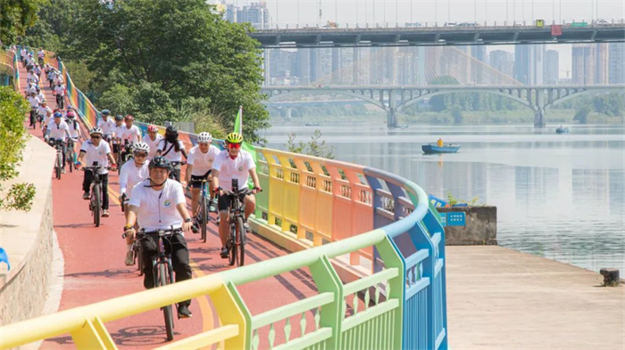 四川新闻网消息 近日,南充市生态环境局组织开展了一场绿色骑行活动,骑行队伍从南充地标建筑清晖阁出发,沿着嘉陵江沿岸滨江景观大道感受低碳骑行带来的快乐美好。