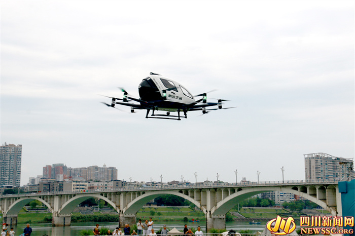 体验人员进入舱内,在轻微的轰鸣声中,飞行器缓缓升空,运行平稳。透过全景挡风玻璃,两岸江景尽收眼底,为乘客带来一场前所未有的空中视觉盛宴。这也是南充市首次实现无人机载人观光飞行,标志着该领域迈出了重要的一步。