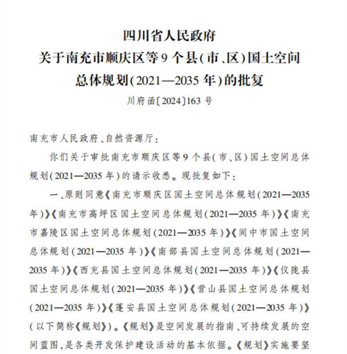 附:四川省人民政府关于南充市顺庆区等9个县(市、区)国土空间总体规划(2021—2035年)的批复