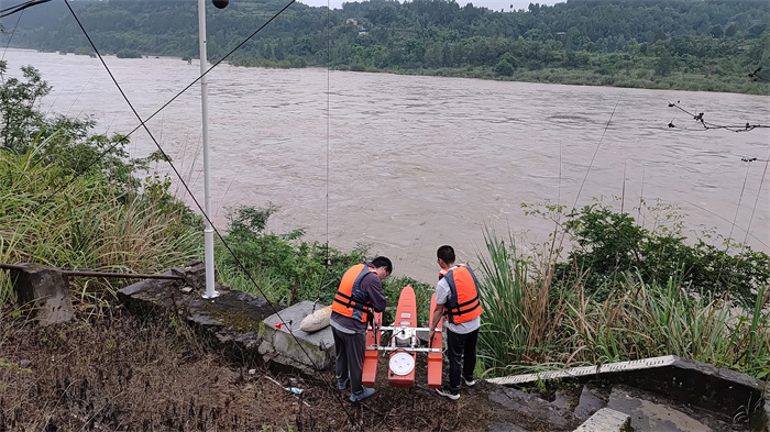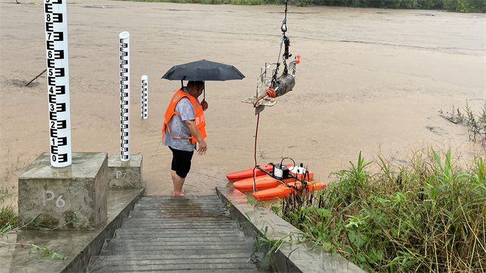 | 南充水文基层一线人员正在抢测洪峰过境情况 |