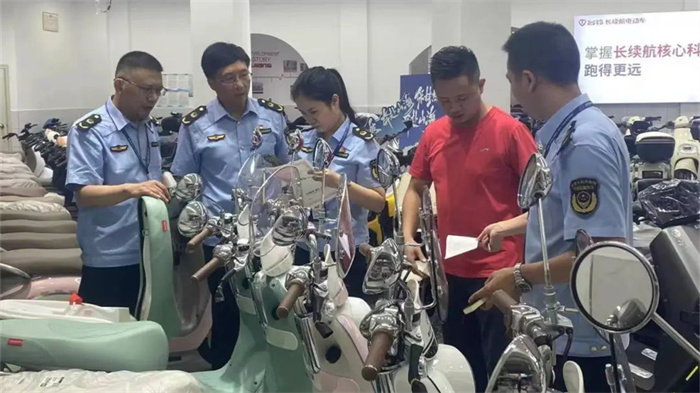 暗访组对人民南路4户电动自行车经营门店检查时发现,其中1户在市、区市场监管部门宣传动员、限期整改后,仍在门店醒目位置摆放着前期检查发现与3C认证参数不一致、涉嫌非法改装的“超标”电动自行车。暗访组再次宣讲了电动自行车销售行为“十不得”,并当即通知辖区局查扣了6台涉嫌违规车辆。目前,辖区局已立案调查。