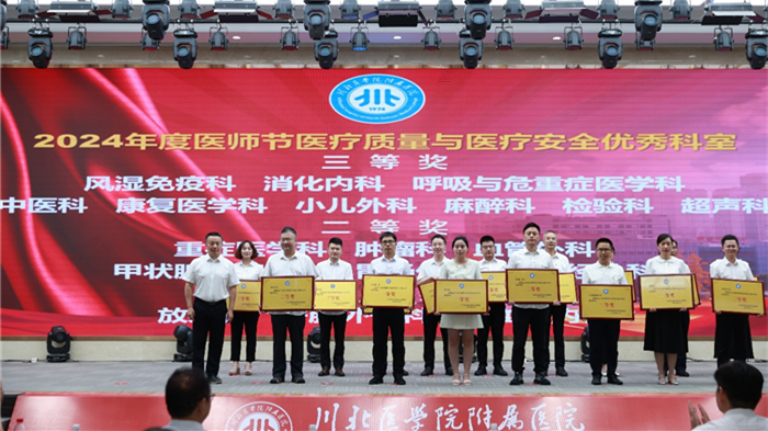 8月16日下午,川北医学院附属医院庆祝2024年度“中国医师节”表彰大会在科研教学综合楼302学术厅举行,医院党政领导、各临床、医药技负责人及获奖科室代表、获奖个人代表参会,副院长任亦星主持大会。
