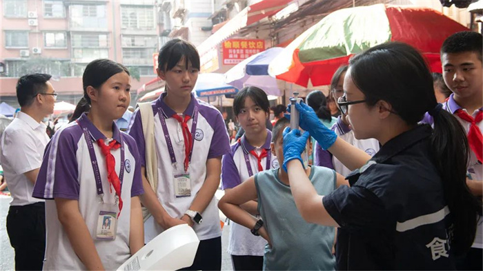 为巩固“校园餐”集中整治成果,让学生参与、见证市场监管局对“校园餐”的监管,8月20日上午,驻南充市市场监管局纪检监察组带领17名青少年走进农贸市场、餐饮店、学校食堂,现场体验食品安全监管工作。