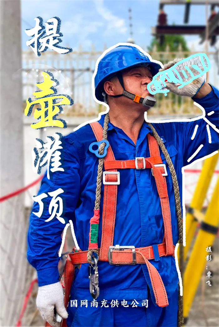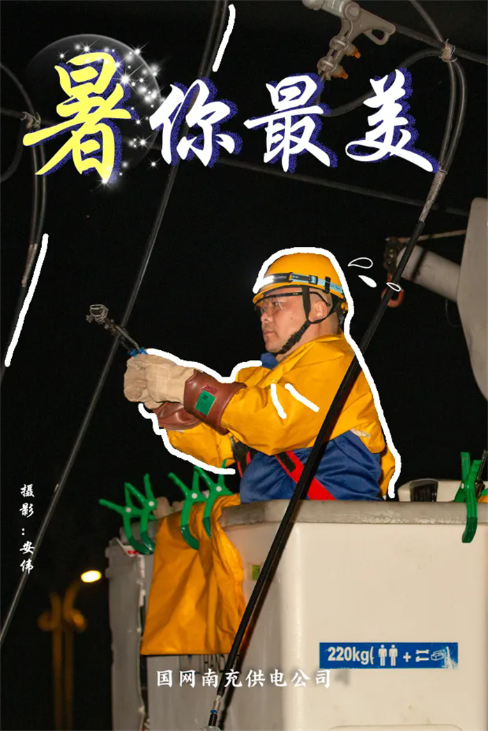 近日,国网南充供电公司发布一组海报,展现电力工作者的日常,致敬那些在高温天气依然坚守岗位、挥汗如雨的真“汗”子,他们用汗水诠释责任与担当,确保电力畅通,守护清凉与光明。(供稿单位:国网南充供电公司)