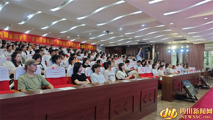 “1号选手正确加五分,2号选手正确加五分……”9月20日上午,四川省第九届学生“学宪法 讲宪法”活动高校组第九片区素养竞赛在西华师范大学举行,来自南充职业技术学院、巴中职业技术学院等8所高校的选手齐聚一堂,他们怀揣着对知识的渴望和对挑战的热爱,用才华与智慧,共同演绎出一场知识比拼与智慧碰撞的盛宴。