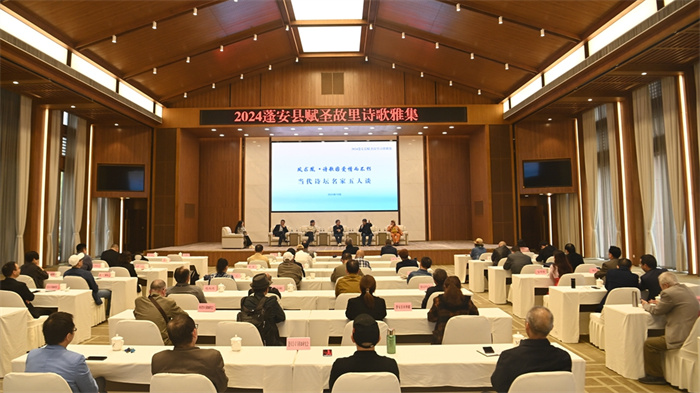10月11日,“我们的节日•重阳”2024蓬安县赋圣故里诗歌雅集活动在该县田园牧歌会议厅举行,来自全国各地26名诗坛名家齐聚一堂,深入交流探讨当下的诗歌创作路径与背景,分享自己的创作理念与未来诗歌价值走向的看法。